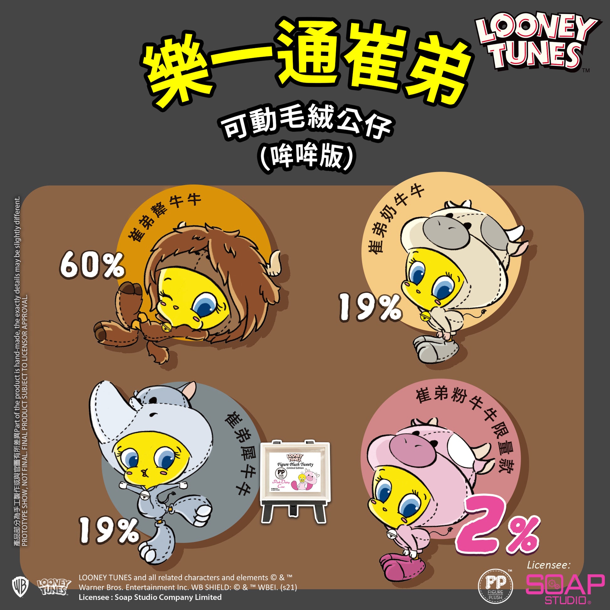 Tweety got some brand new outfits! And now he joins Soap Studio's Figure Plush family with cow suits and cute little bells.