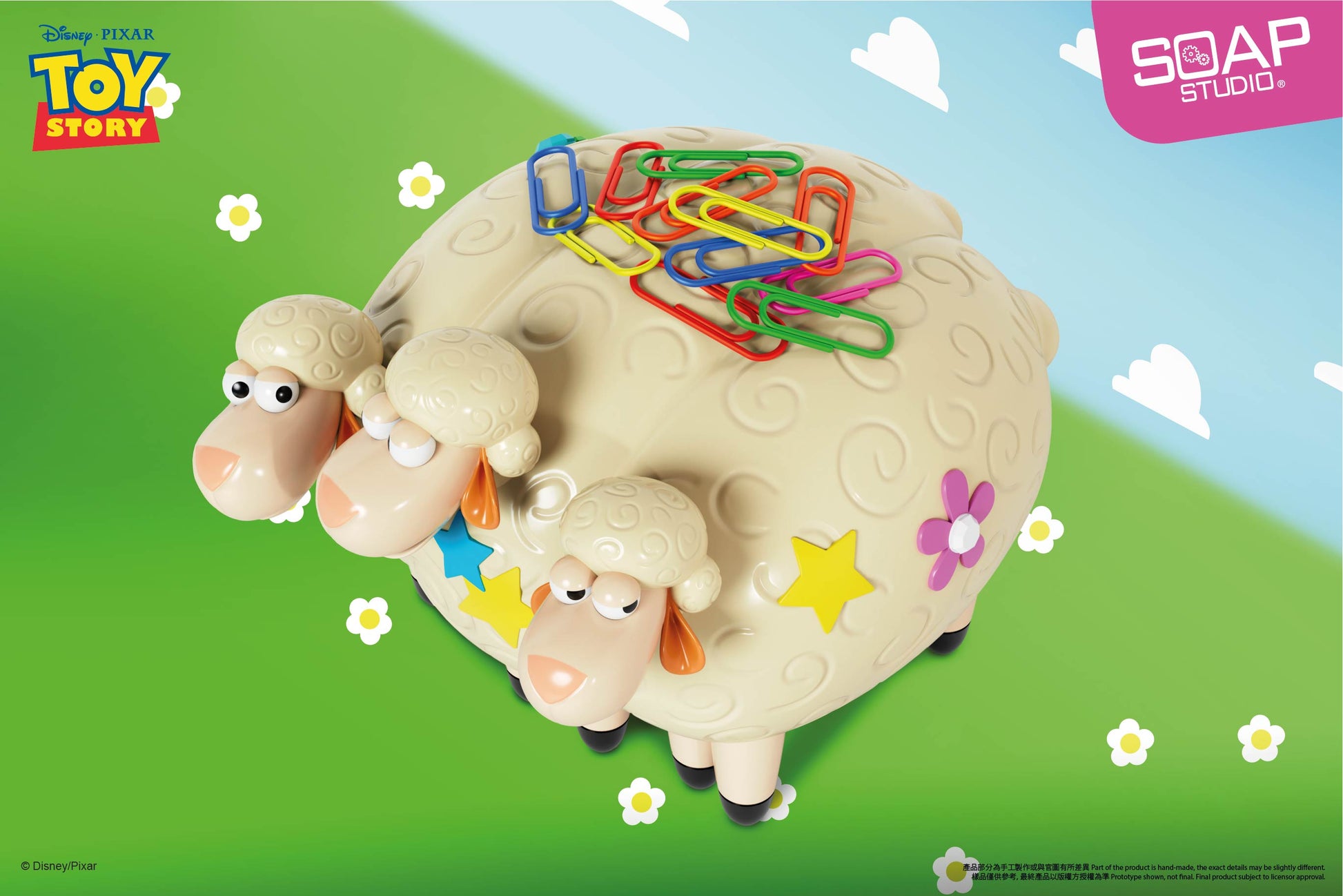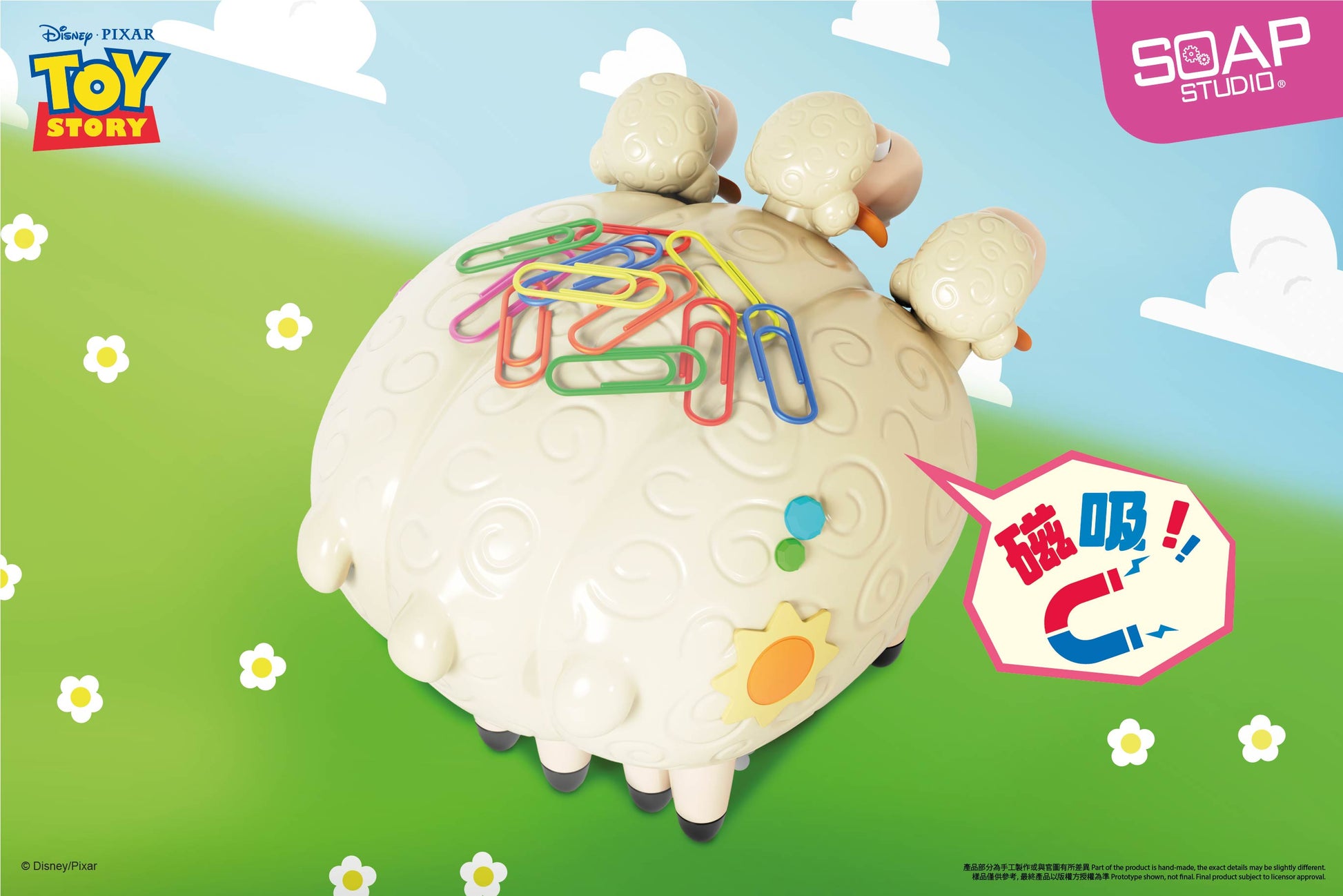 Billy, Goat and Gruff, the three sheep of the Disney Pease Miniature Shepherdess, come in miniature size! They can be used as a practical desktop ornament, and you can adjust the angle of the sheep's heads to your liking, making them playable. The product measures roughly 10.1 cm x 13 cm x 8.8 cm. The body has a magnetic suction function, which can easily hold various metal products such as paper clips, making your desktop clean and tidy, easy to reach.