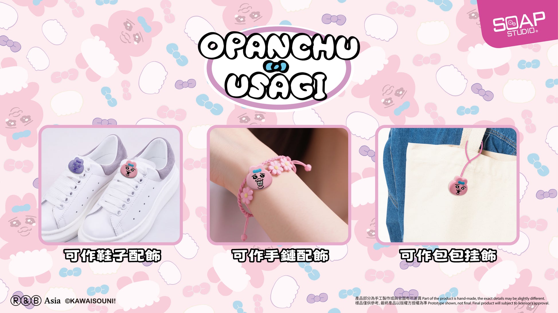 Opanchu Usagi褲褲兔變身超萌表情扣,裝進糖果袋裡甜美登場!每款附有3粒褲褲兔頭造型的萌粒扣,背面設有可轉動扣環,可穿在鞋帶上,或用繩串成手鍊、掛飾,打造專屬你的趣味搭配風格。 糖果袋包裝不只能裝可愛,還能重複使用當吊飾或小物收納袋,無論掛在包包上或用來收藏萌粒扣,都讓日常充滿驚喜!