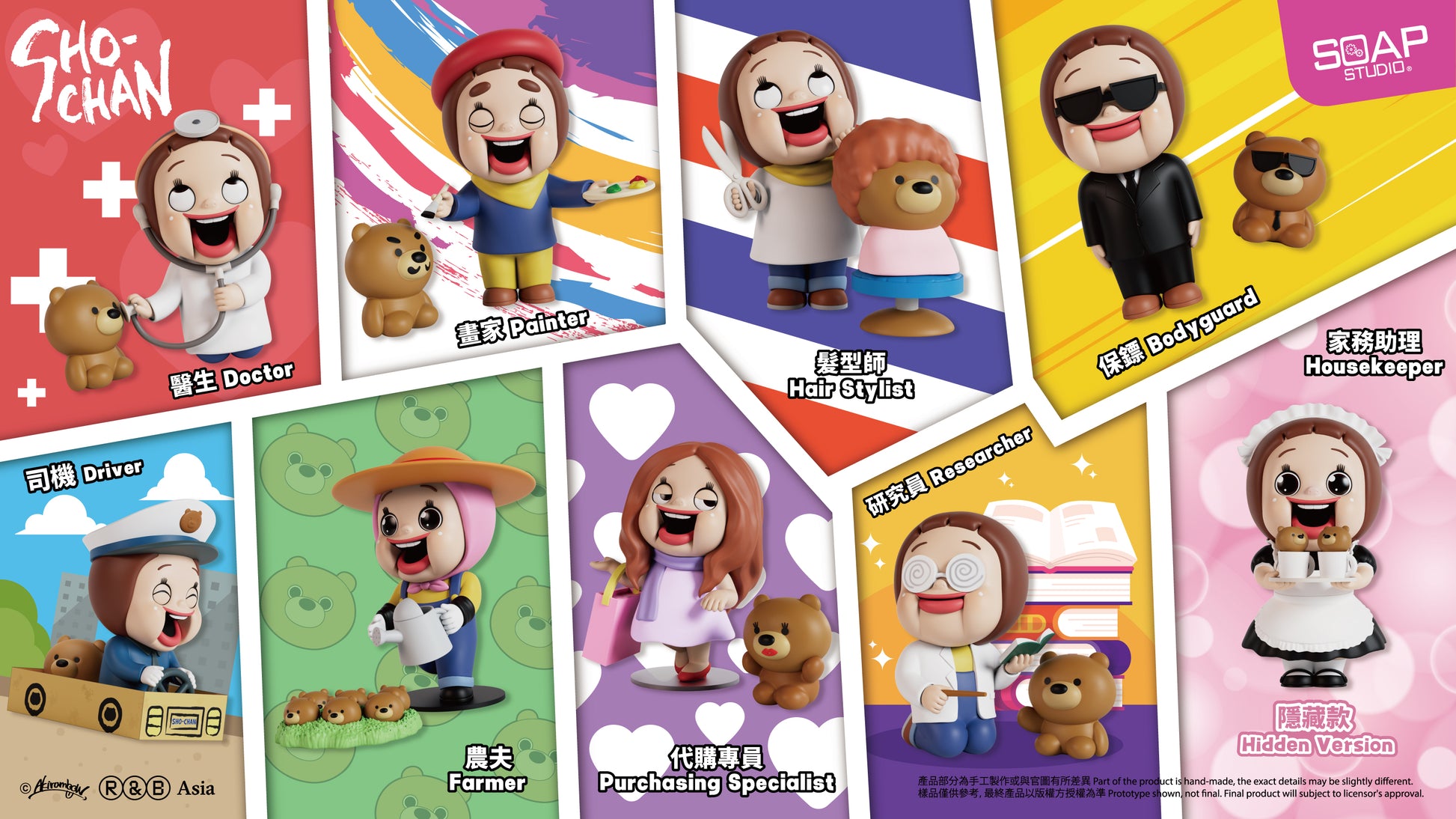 從醫生、畫家、髮型師、保鑣,到司機、家務助理、採購專員與研究員,每一款都融合了SHO-CHAN經典的搞鬼表情,讓角色造型更加生動有趣。每款皆配有專屬配件與造型細節,豐富呈現各行各業特色。產品採用高品質PVC製作,質感出色、尺寸輕巧,方便擺飾與收藏。更具互動巧思的是,部分配件可與其他角色互換,帶來自由搭配的創意玩法,提升整體趣味與可玩性。